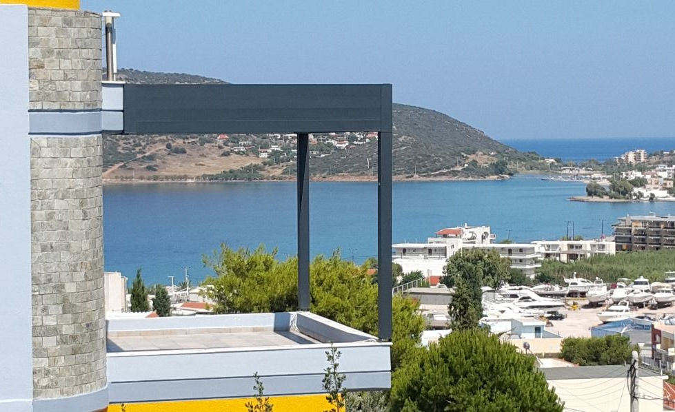 Η κατασκευή είναι εξ' ολοκλήρου από αλουμίνιο με εξαρτήματα συναρμογής INOX. Οι πλαϊνοί οδηγοί είναι προφίλ αλουμινίου συνολικών εξωτερικών διαστάσεων 130mm x 65mm. Οι κολώνες είναι προφίλ αλουμινίου εξωτερικών διαστάσεων 130mm x 130mm. Η μέγιστη καλυπτόμενη επιφάνεια με μονοκόμματο ύφασμα είναι 5,00m x 5,00m. Η κίνηση του υφάσματος πραγματοποιείται από ασύρματο μοτέρ του Γαλλικού οίκου Somfy.